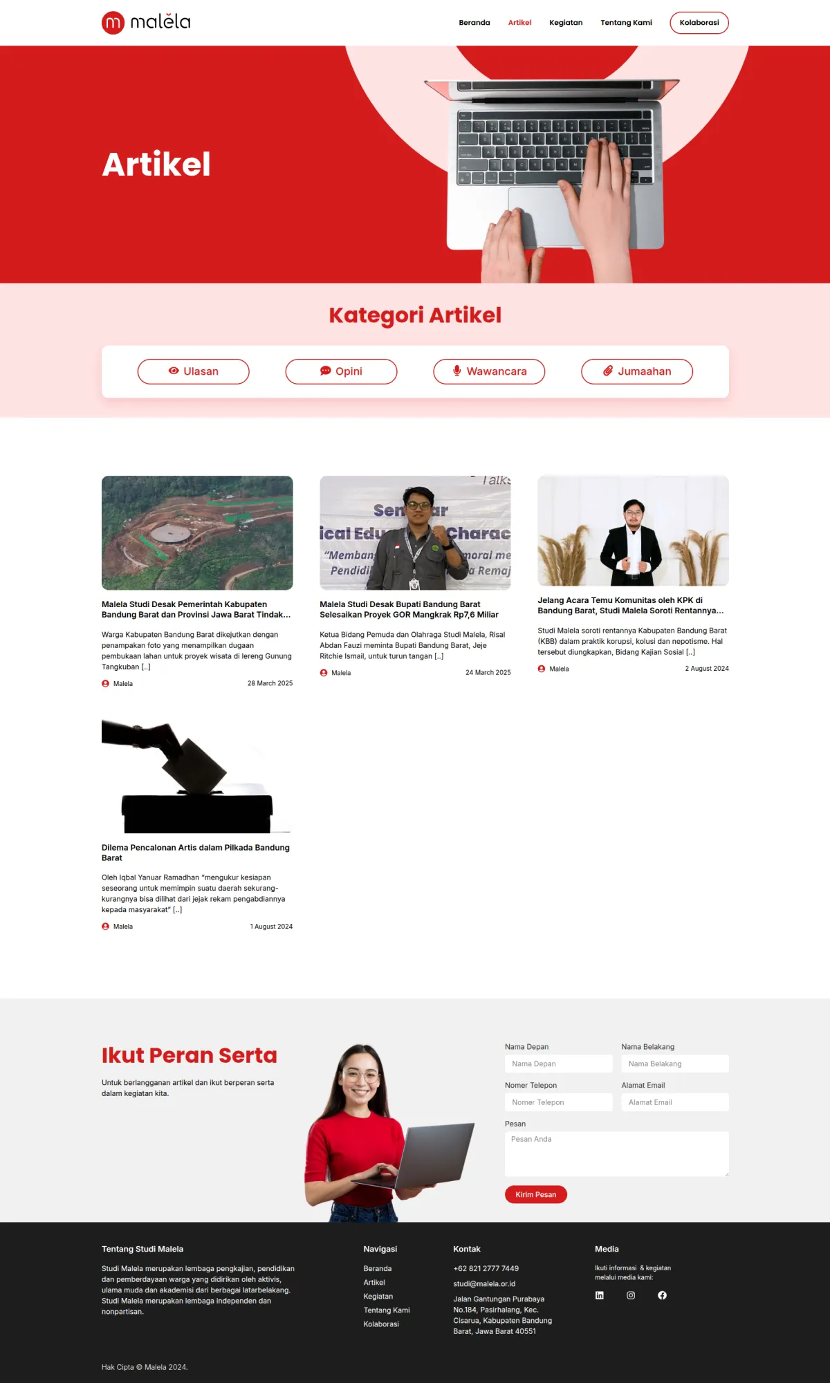 - Halaman Kontak & Kolaborasi untuk memfasilitasi kerjasama