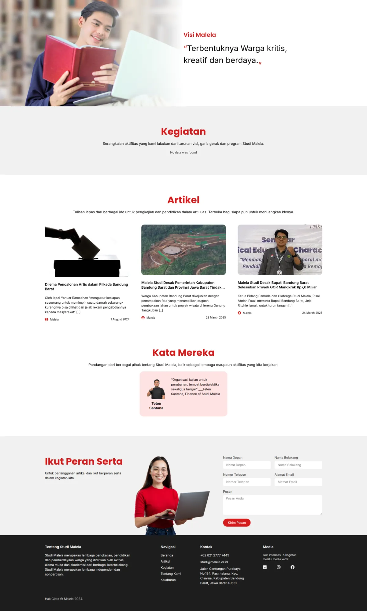- Halaman Kontak & Kolaborasi untuk memfasilitasi kerjasama